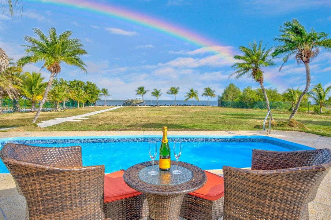 Discover the easygoing charm of the Lower Keys at this .81-acre waterfront estate, featuring a two-bedroom, two-bath main house and a one-bedroom, one-bath guest cottage with views over Bogie Channel. Enjoy leisurely days entertaining under the large poolside tiki hut or on the covered platform at the end of the 463-foot pier—perfect for relaxing with family and friends while watching sunsets after a fun day on the water. The platform is equipped with a boat lift, floating jet ski dock, and an outdoor kitchen. The completely renovated, two-story CBS main home offers a spacious 1,950 sq. ft. living area with enough space to possibly add a third bedroom if needed. Large impact-resistant windows allow for views of peaceful sunrises and moonrises over the property and open water. The updated 536 sq. ft. frame-stucco guest cottage gives visitors their own comfortable retreat. Thoughtfully planned lighting enhances the 35,330 sq. ft. fenced property. Monroe County's small Palm Villa Park borders the southern edge, and the County owns the land directly across the street to the north, intended to remain undeveloped. Move-in ready and tastefully furnished, this tranquil slice of paradise is just minutes from local shops and restaurants, and only 30 miles from lively Key West.