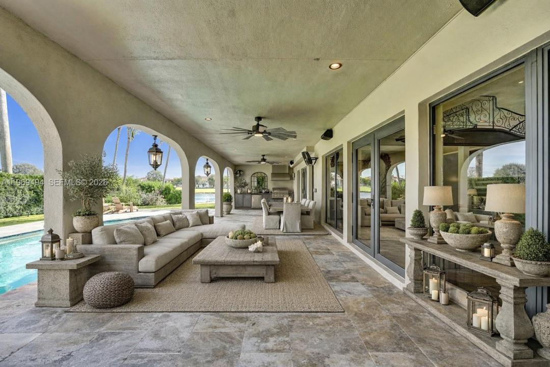 Hidden gem in Emerald Hills where prestige meets privacy. Nestled on a rare point lot at the end of a quiet cul-de-sac with tranquil lake and fairway views, this stunning 5 bedroom 6 bathroom residence delivers effortless indoor-outdoor living. The grounds feature mature landscaping and a private swimming pool, creating a true backyard oasis. The perfectly curated chef’s kitchen is the heart of the home featuring a stunning 22’ quartzite island, top-of-the-line appliances, wine fridge, and coffee station. Soaring ceilings, expansive living areas, and multiple flexible spaces create the perfect setting to gather and grow. The primary suite offers multiple sitting areas, a fireplace, dual walk-in closets, and balcony access, plus a serene bathroom complete with free standing soaking tub, dual shower, two private water closets. Impact windows and doors, newer roof, full-home gas generator.