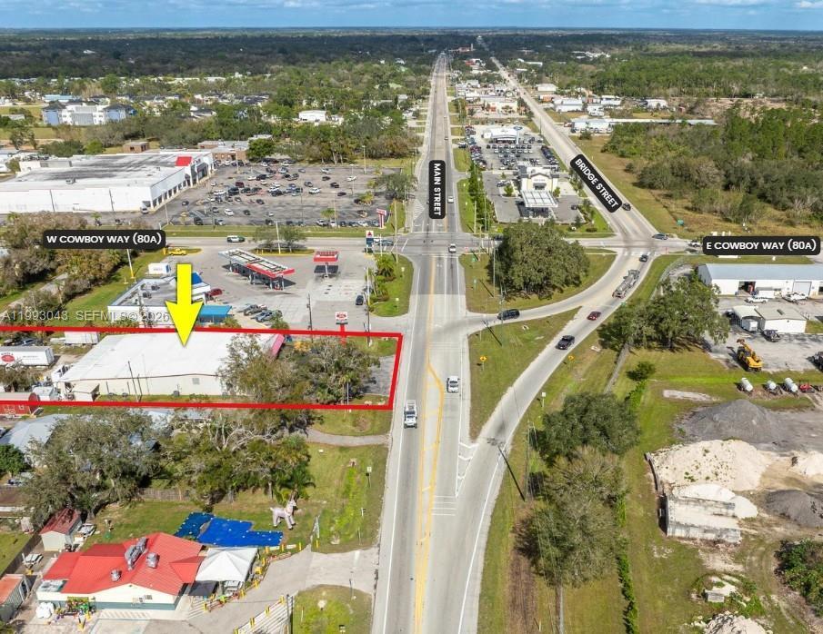 PRIME LOCATION IN BETWEEN WINN-DIXIE AND HELMS ROAD EXTENSION IN PATH OF PROGRESS! The facility consists of a 7,500 sq. ft. steel building with a 1,050 sq. ft. addition. The building boasts a new metal roof (installed in 2023) and new acrylic finished flooring. The property site is .578 acre with 100' on State Road 29 S. Front of the building features asphalt parking area and open canopied front porch for display purposes; back of building is situated on Luckey Street, providing rear access plus the current workshop and repair area including Ted's shed. Zoning is C-3, offering many commercial uses. Property is in Hendry County, but is serviced by City water. The building is open with center offices which can be easily removed or relocated and has some loft storage.
