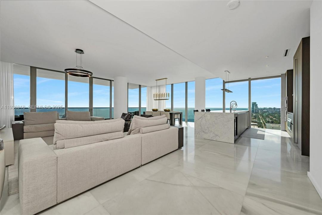 Welcome to an Oceanfront South Corner Turnkey Residence with a private elevator landing, a rare opportunity with a unique floor plan that offers bigger bedrooms than any other unit in the building as well as a linen closet and an office/den. This 3Bed, 3.5 baths has the best panoramic views, completely unobstructed to Golden beach. Residence comes with high end furnishing as well as the highest upgrades like Marble floors, Boffi custom Kitchen and Shadetec window treatments throughout the residence that create a seamless blend of modern coastal luxury and refined comfort. Sitting directly on the sand enjoy stunning sunrise coffee and sunset lounging effortlessly from your residence. The building features 24 hr. concierge, facial recognition access, and resort style amenities that include beach service, an east and west pool decks, spa pavilion with a yoga studio, sauna, ice room and Gym.